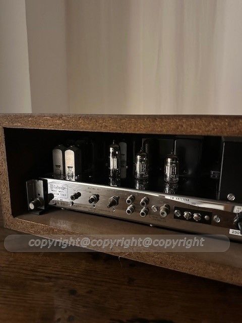 McIntosh MR71 Komt uit een collectie. Zeer fraai en 100% origineel exemplaar. 230V. Nu: 2750 euro. http://roger-russell.com/aboutmc.htm Comes out of a collection. Superb sample, 100% original condition. 230V. Now: 2750 euro.
